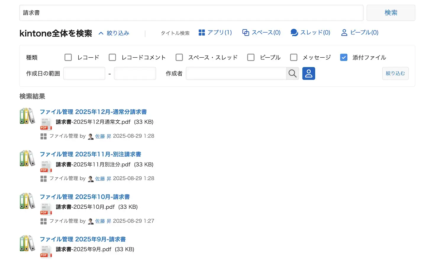 kintoneでは、レコードごとにファイルを添付することが可能です。