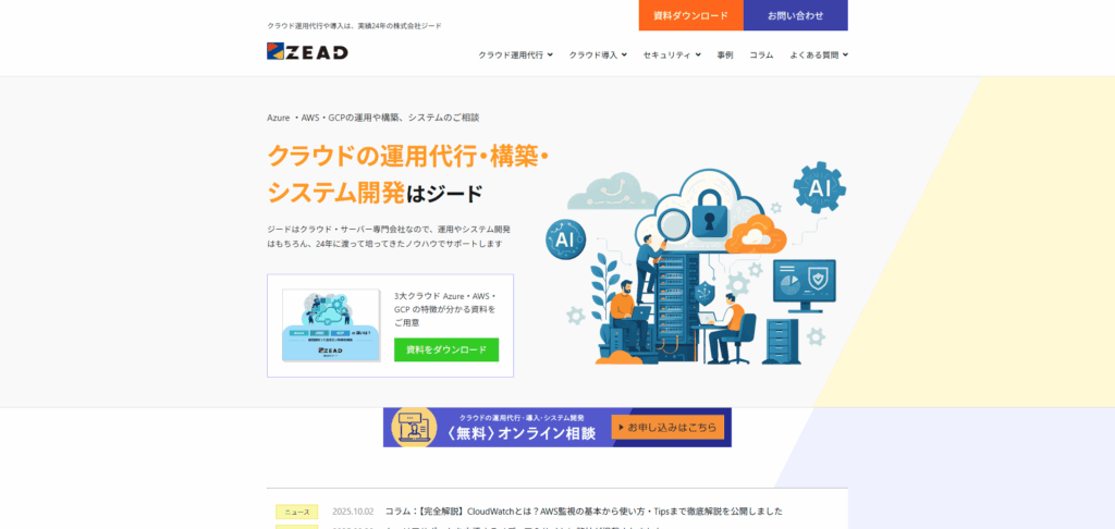 クラウド・サーバー専門会社として、24年にわたる実績とノウハウを持つ企業です。Microsoft Azure、AWS、GCPの「3大クラウド」に特化し、監視、保守、運用代行サービスを提供。システムの安定稼働を24時間365日体制でサポートしています。クラウド導入の設計・構築からシステム開発、セキュリティ対策まで、ワンストップで最適なソリューションを提供します。