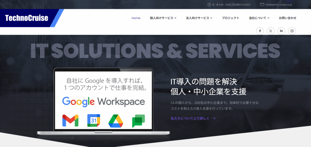 創業60年以上の歴史を持つ中小企業のIT部門から生まれた、中小企業・個人向けのIT解決支援企業です。中小企業の日本的商習慣や特性を深く理解しており、「お客様」ではなく「御社の一員」として、コストを抑えた効率的で必要十分なIT導入をサポートします。Google WorkspaceをはじめとするGoogle Cloud製品の導入に注力し、リモート対応で全国の企業に、効率化と安全なデータ管理を提供しています。