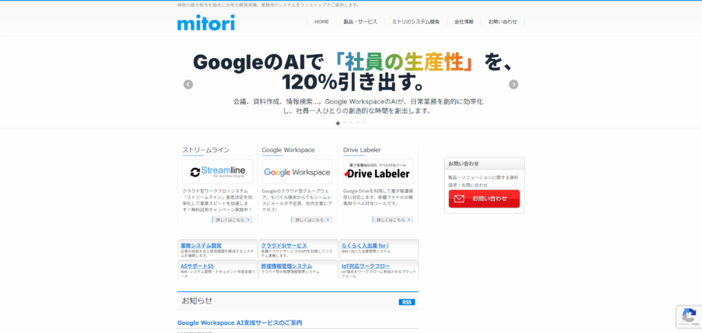 神奈川県大和市を拠点に、30年以上の実績を持つ業務用システム開発会社です。クラウド型ワークフロー「ストリームライン」やGoogle Workspaceなどのクラウドサービス提供から、企業の経営課題を解決するオーダーメイドのシステム開発まで、業務用ITシステムをワンストップで提供。特にGoogle Workspaceについては、AI(Gemini)活用支援や電子帳簿保存法対応ツールなど、独自の付加価値サービスを展開しています。