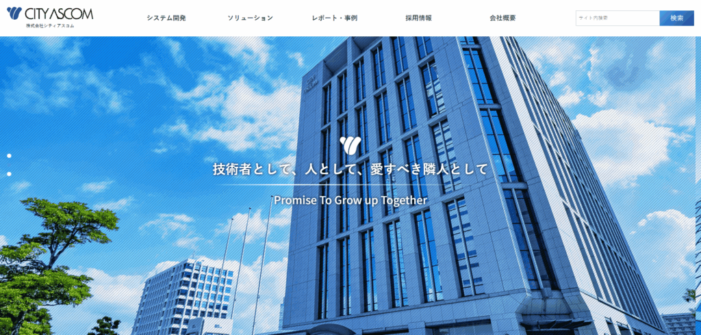 株式会社シティアスコムは、福岡市早良区百道浜に本社を構えるIT企業で、システム開発、ソリューション提供、ITインフラ構築など、幅広いICTサービスを提供しています。「お客さまと明日を創るICTパートナー」として、地域社会の発展に貢献する「地域共生」に積極的に取り組んでいます。また、SDGsやDX(デジタルトランスフォーメーション)への取り組みを通じて、持続可能な社会の実現を目指しています。