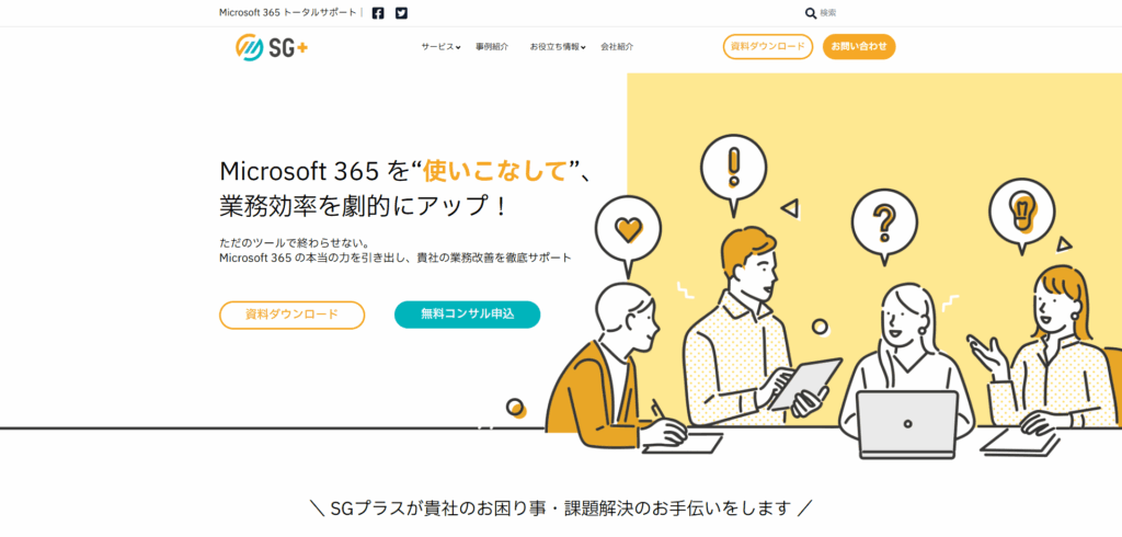 SGプラス株式会社は、Microsoft 365を活用した業務改善を支援するIT企業です。SharePointを活用したポータルサイト構築や、Power Platformを用いたアプリ開発、Copilotによる業務改善など、幅広いサービスを提供しています。お客様の課題に応じた最適なソリューションを提案し、業務効率化や生産性向上を実現します。経験豊富なエンジニアとコンサルタントが連携し、確かな技術力でサポートいたします。