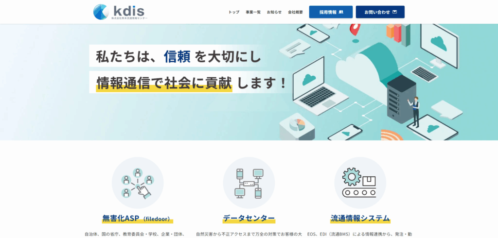 株式会社熊本流通情報センター(KDIS)は、熊本県・熊本市をはじめとする自治体と、NTT西日本、九州電力、富士通、NECなどの大手企業による共同出資で設立されたICT企業です。県内最大級のデータセンターを運営し、公共インフラや企業システムの運用・構築を通じて、地域社会のICT基盤を支えています。