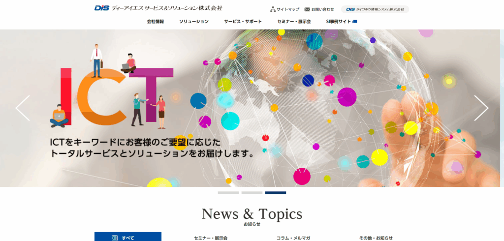 ディーアイエスサービス&ソリューション株式会社は、IT機器導入・システム構築から運用保守、障害復旧まで一貫した技術サービスを提供しております。クラウドやシステムインテグレーションのソリューションに強みを持ち、顧客の業務効率化やDX推進を支援。加えて、物流部門も併営し、ITと物流を融合したサービス体制を有します。