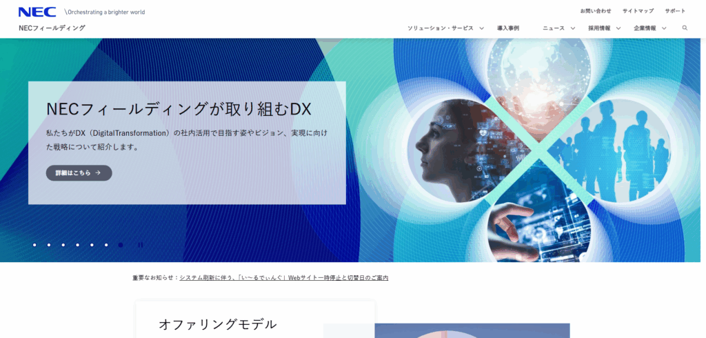 NECフィールディングは、NECグループの一員として、ICTシステムの企画・設計から導入・構築、運用・監視、保守までのライフサイクル全領域を一括でサポートするワンストップ企業です。全国約400拠点のサービスネットワークを展開し、マルチベンダー対応・機器保守・障害対応・クラウド運用など、顧客の ICT インフラを安定的に支える体制を構築しています。