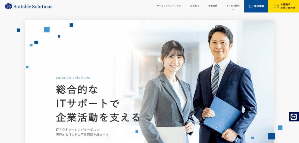 株式会社スータブル・ソリューションズは、中小企業の IT 環境を一括サポートするITパートナーです。インフラ構築、ネットワーク設計、クラウド導入、セキュリティ対策から日常の運用保守まで対応し、「情報システム部門代替」として顧客に寄り添った支援を行っています。ISO27001 を取得し、信頼性を重視したサービス運営を展開しています。